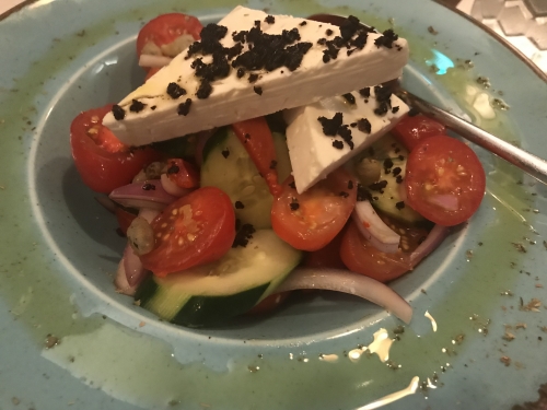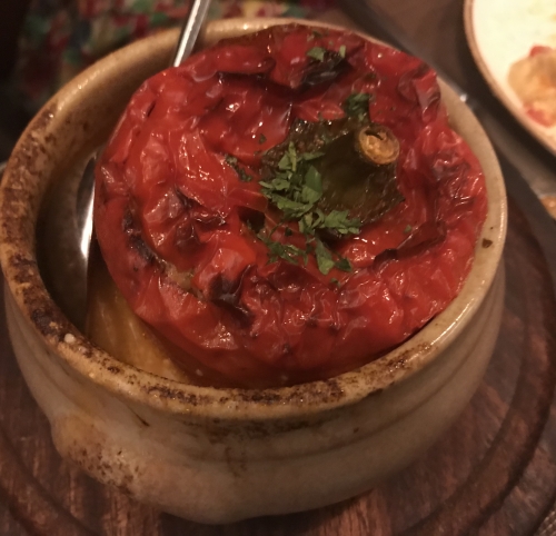 塩気と酸味の効いたフェタチーズのグリークサラダ(SGD19・約1,400円)や、ご飯が詰まったパプリカに、オリーブオイルをたっぷりかけて焼いた料理(SGD15・約1,200円)がおいしいです。