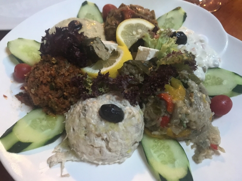 イスラム教寺院のサルタンモスクから流れるコーランが聞こえることもある、エキゾチックな雰囲気の中で食べるトルコ料理は一味違います。
