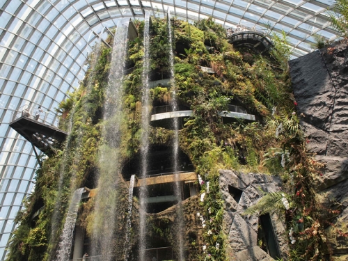 園内は3つの庭園に分かれていますが、オススメしたいのはその中の1つ「ベイサウス」内にある2つのドーム型の温室。世界中の様々な植物が展示されているフラワードームと高山をイメージした人口の滝が流れるクラウドフォレスト。