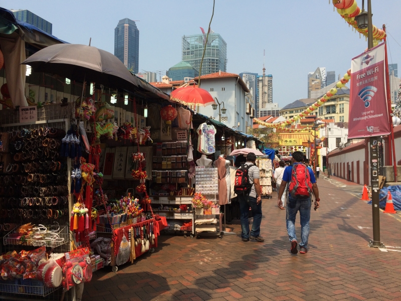 MRTチャイナタウン駅のすぐ目の前に広がる「パゴダ・ストリート」。狭い道の両脇には、中国雑貨やお土産店が軒を連ね、いつ訪れても多くの観光客と中国人で活気にあふれています。