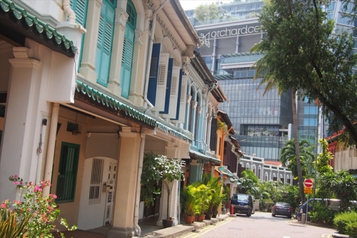 オーチャードエリアにあり観光客も訪れやすい「エメラルド・ヒル」。ショッピングモールやデパートが並ぶ、シンガポールの銀座のような「オーチャードロード」から一本入っただけで、伝統的なショップハウスが並ぶストリートに出会うなんて、面白いですよね。
