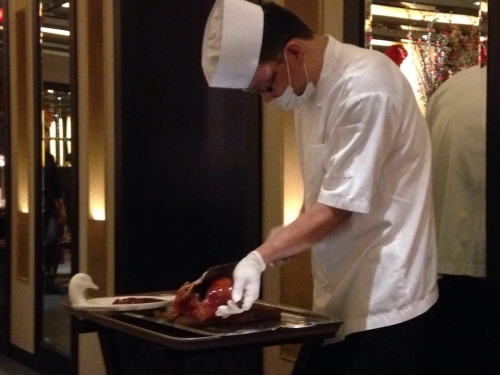 出典:townnote.jp目の前で店員さんが北京ダックをさばいてくれます。