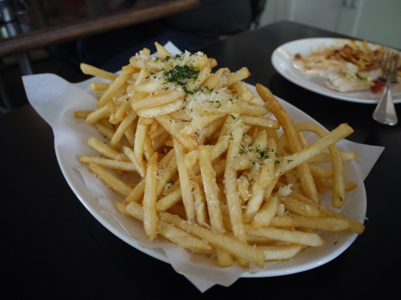 揚げたての細切りタイプのフレンチフライに、香りの良いトリュフオイルとパルメザンチーズがたっぷりかかったPS.cafeの一番人気メニュー。このフレンチフライ目当てに訪れる人もいるほど。量もたっぷりありますが、食べ始めると手が止まらない美味しさなので意外といけちゃいます。席に座ったら「とりあえずビール」の感覚で「とりあえずトリュフ・フレンチフライ」を。