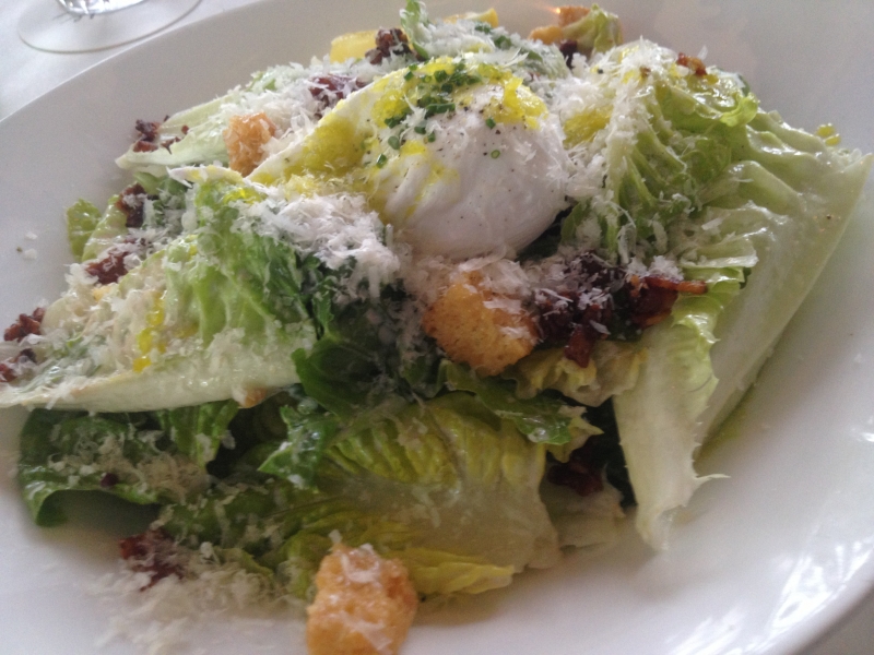 トリュフフレンチフライのお供にオススメなのが、このシーザーサラダ。フレッシュな野菜の上に、ベーコンやポーチドエッグがのせられ、更にその上にはたっぷりのパルメザンチーズが。お店のイチオシメニューです。そのままでも十分なボリュームですが、お好みで海老かチキンのトッピングも出来ます。
