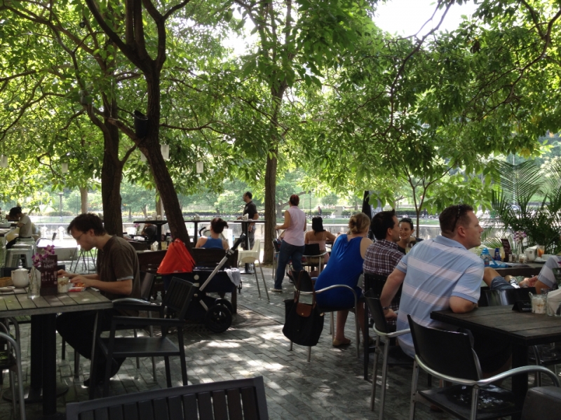 ギャラリーホテルの1階にあるレストラン。お店の半分をテラス席がしめ、テラス席からはシンガポールリバーをのぞむことができます。たくさんの木々があり、気持ちよく過ごすことができますよ。日よけ効果もあっていいですね。