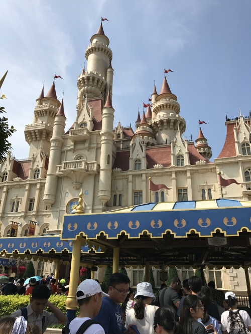 シュレックの世界をテーマにしたおとぎの国のエリアです。アニメに登場するお城が再現されているのが魅力的で、高さ39.5メートル、46の塔からなるこのお城の中は、シュレックの4Dシアターになっています。
