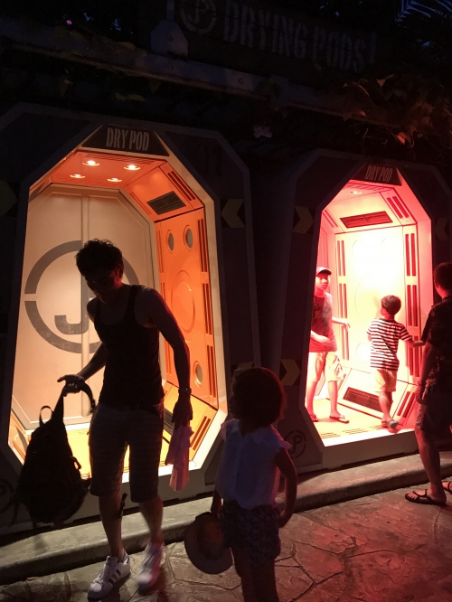 ただ、濡れても大丈夫!出るとすぐ、4人が一気に入れるくらいの乾燥場所があります。$5(約400円)入れるとドライヤーのように風が出ます。