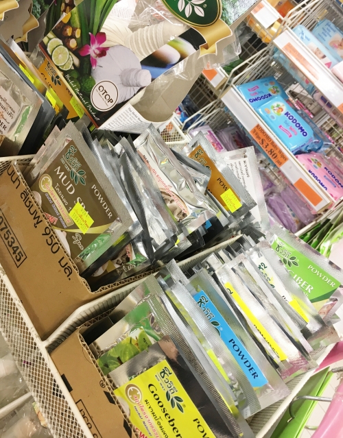 美人の多いタイ人向けのスーパーらしく、ビューティー系の商品が豊富です。日本とは品揃えが違っていて、どんなものがあるのかを見るだけでも面白いです。