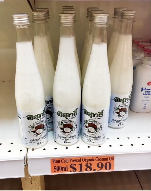 その他のビューティー系商品として、日本で大ブームになったココナッツオイルの製品もちらほら目につきます。さすが南国のスーパーです。