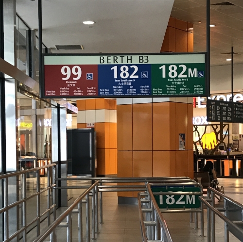 1階に降りるとバス乗り場がいくつかありますので、B3の乗り場から、182番か182M番のバスに乗ります。