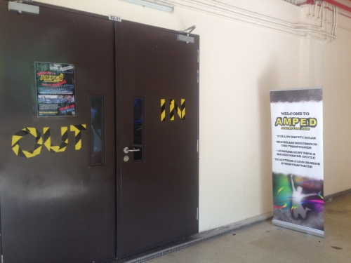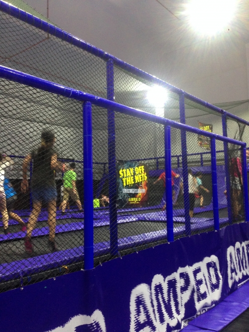 トランポリンの本場アメリカからきた「AMPED」は、シンガポールに3か所ある、トランポリン専用施設です。学校の体育館のような屋内にずらーっと、2㎡ほどの大きさのトランポリンが並んでいます。接触等による事故を防ぐため、一人ずつ一つのトランポリンスペースが確保出来るように入場制限されています。