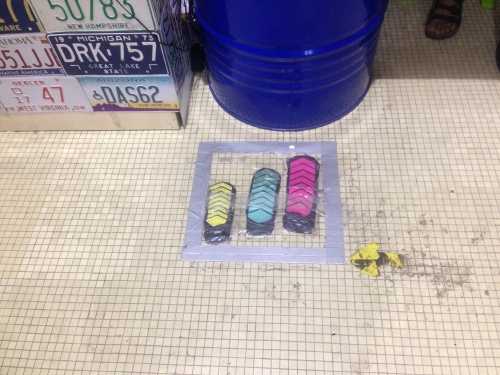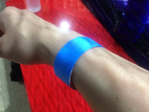 受付で予約してあることを伝えると、時間帯別のカラータグがもらえます。入場料に500mlのお水が含まれているので、受付後にペットボトルの水を取り、荷物を棚へいれます。