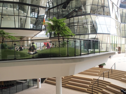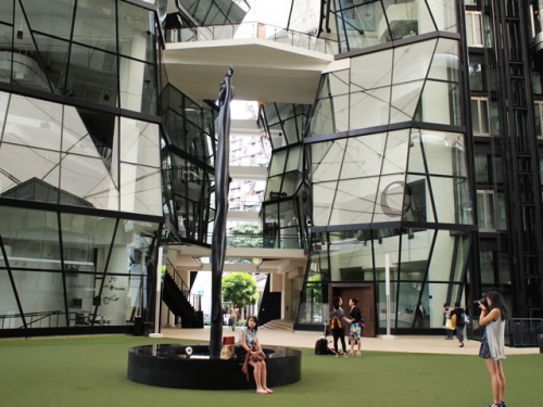 未来都市のような斬新なデザインのこの建物は、ラサール芸術大学という美術学校で、世界中から学生たちが集まっています。RSP アーキテクツ プランナーズ&エンジニアーズによる設計で、2010年にオープン。ガラス張りの建物の上部はテントで覆われています。