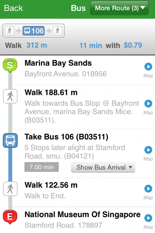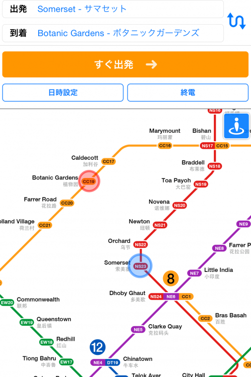 こちらは日本でもおなじみの乗り換え検索アプリ、NAVITIMEのシンガポール版です。