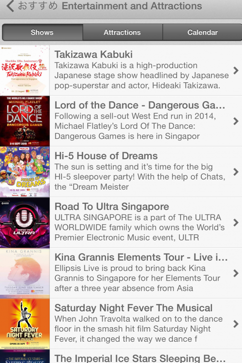 このアプリは宿泊予約だけでなく、レストランの予約劇場で行われるショーの予約もできるんです。