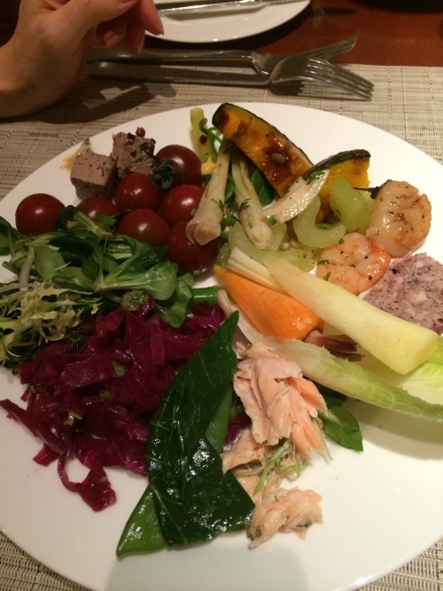 前菜コーナーには野菜をふんだんに使った色鮮やかな料理が並び、旅行中の野菜不足を十分に補ってくれます。プラス料金でメインを付けることも出来ますが、前菜の種類が豊富でボリュームもあるのでメインが無くても満足できます。