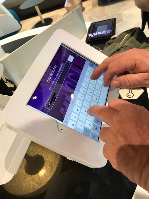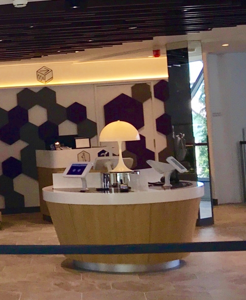 チェックインは、入り口にある丸テーブルの上にある端末を使ってのセルフチェックインとなります。使い方がわからないときは、奥の受付に待機しているスタッフが手伝ってくれます。端末の指示に従ってEmailアドレスなどの情報を入力、パスポートをスキャンし、クレジットカードで支払いをした後、キーカードを作ってチェックイン完了です。