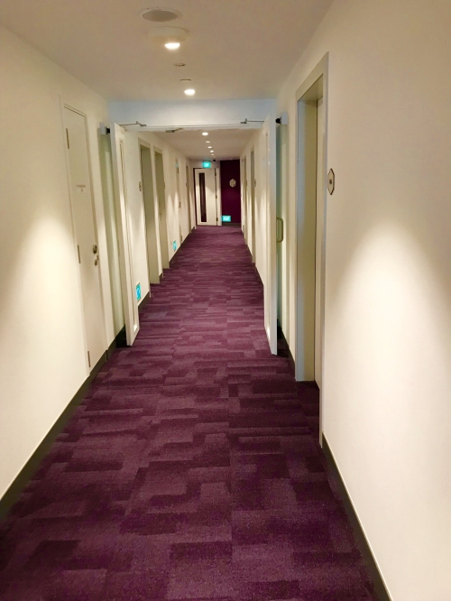 デジタルに詳しい若者をターゲットにしているそうで、内装は紫とシルバーを基調としたポップなデザイン。客室も「客室」とは言わず「キャビン」、フロントデスクを「ミッションコントロール」と言ったり、スタッフのユニフォームもカジュアルな仕様になっているなど、従来のホテルとは一味違います。