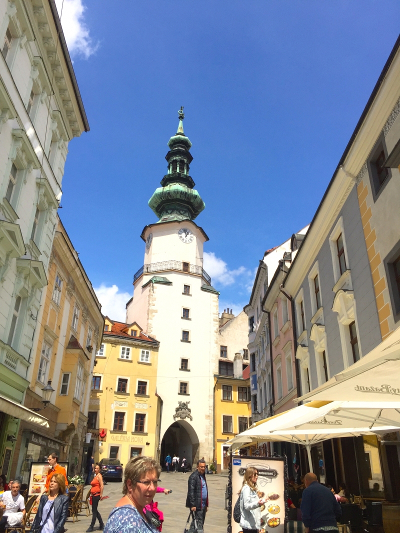 旧市街のシンボルのように残るミハエル門は、かつてブラチスラバを守っていた要塞の1つ。細くて高い造りなので、門ではなく塔のようにも見えます。