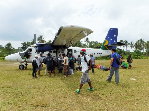 首都ホニアラから飛行機の直行便が出ており、所要時間は約1~1時間半。ただし、運航数は少ないので事前チェックは必須です。搭乗する航空機は一般的な飛行機であるジェット機ではなく、プロペラ機。座席数も25名程度と少なく、小型のため機体が揺れやすい!