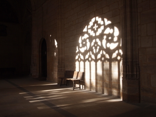 中でも、スペイン独特のパティオ(小庭)のような回廊がとても美しく、ぼ~っと眺めているだけでまるで映画の世界に迷い込んだようでうきうきします。ロマネスク様式の回廊は、季節や時間などで刻々と変化する光の温かさや鋭さを体感することのできる空間となっています。