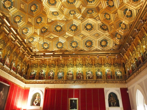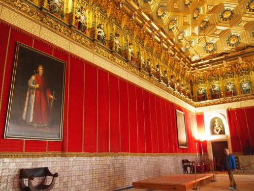 城内部はかつての面影が残されており、現在は一般観光客が自由に見学できる博物館的機能を果たしています。黄金の天井に真っ赤な壁、そこに大きな額縁に入った肖像画がいくつもかけられており、とても煌びやかな空間です。