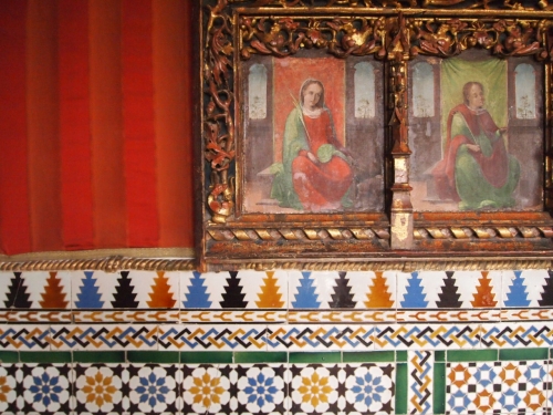 アルカサル城がアラビア語に由来するだけあり、この回廊には、色鮮やかなイスラーム様式の装飾タイルが埋め込まれています。