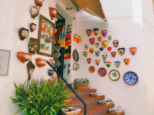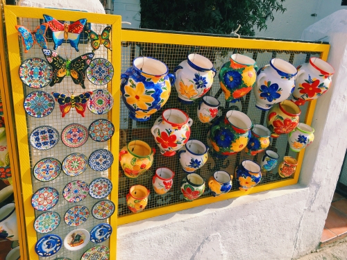 南スペインらしいカラフルでポップなデザインの陶器は、どれも魅力的でお土産にぴったり!大きな壺状のものから小さい小皿までたくさんの種類が揃っています。