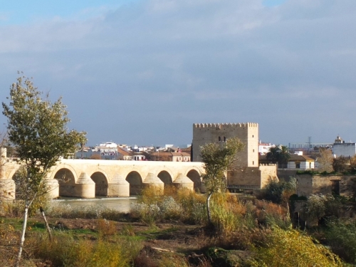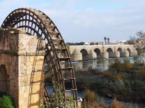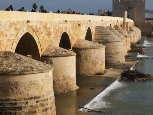 古代ローマ時代に築かれた「ローマ橋」は、グアダルキビル川にかかる橋で全長247m、幅9m。各地にダムができるまでは、今よりもずっと水量が豊富だったため、橋脚は洪水時の激流に耐えられるよう、石組みで流線形になっています。