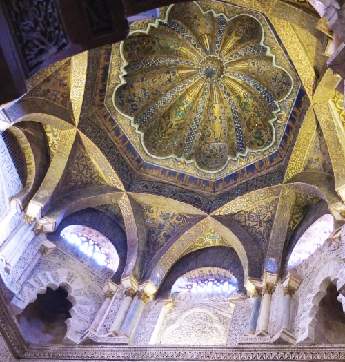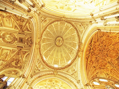イスラム教では、メッカの方向を示す「ミフラーブ」というくぼみがあるのですが、それを強調するために造られたマスクラという空間の天井と、キリスト教のためのカテドラルの天井とでは、雰囲気がまったく異なっています。同じ建物内で両者の違いを比較できる機会ですので、じっくり堪能してください。比較対象が間近にあるので、楽しいです。