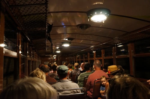 チケットを購入したら、ホームで待ち、列車が駅に入ってきたら早速乗車です!外観だけでなく内装もレトロな列車では、タイムスリップしたような気持ちにテンションが上がります☆基本的に自由席なので、好きな席に座ることができます。窓のない連結部分はちょっぴりスリリングですが、覗いてみる価値ありです。