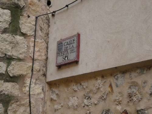 セゴビアの街の標識をよく見ると、太陽の門 プエルタ・デル・ソル(Puerta del sol)の文字…マドリッドにあるあの有名な太陽の門のことで、ここでは小道の名前となっています。