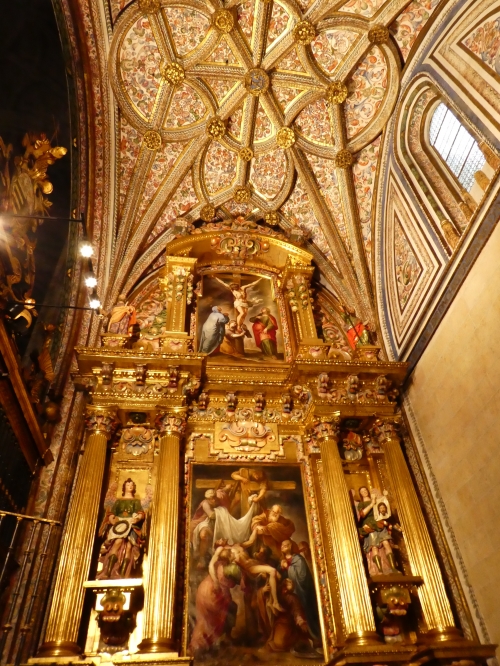聖堂内の祭壇は、とてもきらびやか。黄金を基調とした、豪華ながらもなぜか温かみを感じる絵画…天井から床までセットで、思わず目を見張る美しさです。簡素だったり、絢爛だったり場所によって表情が変わる堂内にいると、時間がたつのを忘れてしまいそう。
