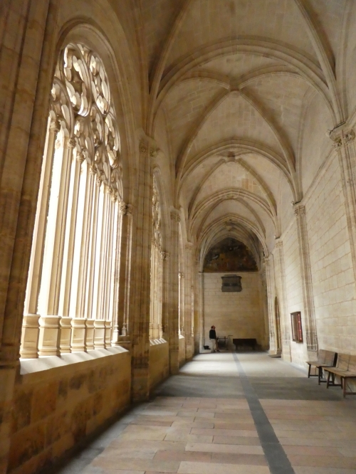 荘厳な堂内から回廊に出ると、別の眩しさが目に飛び込んできます。天気が良ければスペインの太陽を感じ、現実世界に引き戻されることでしょう。柱の影にいると、強い日差しとは対照的にカラッとした空気を感じて、ホッとできること間違いなしです。