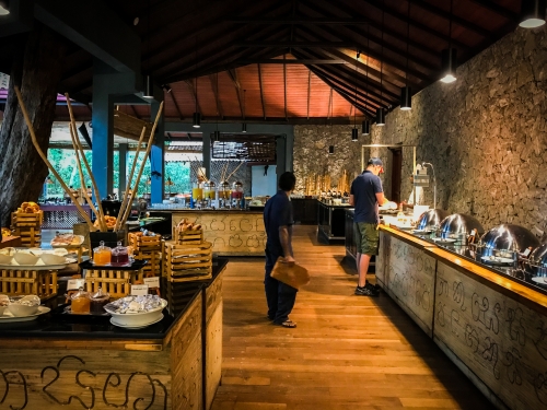 こちらでは毎朝朝食もビュッフェスタイルでサーブされており、宿泊すれば必ずお世話になる場所です。筆者が利用した時は料理のメニューが非常に豊富で、ベーコンやオムレツ、はたまたミニバーガーなどの洋食から、スリランカスタイルのカレー、フレッシュなフルーツまで様々なメニューが用意されていました。