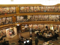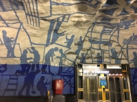 陰絵のような中央駅のブルーラインの地下鉄駅。