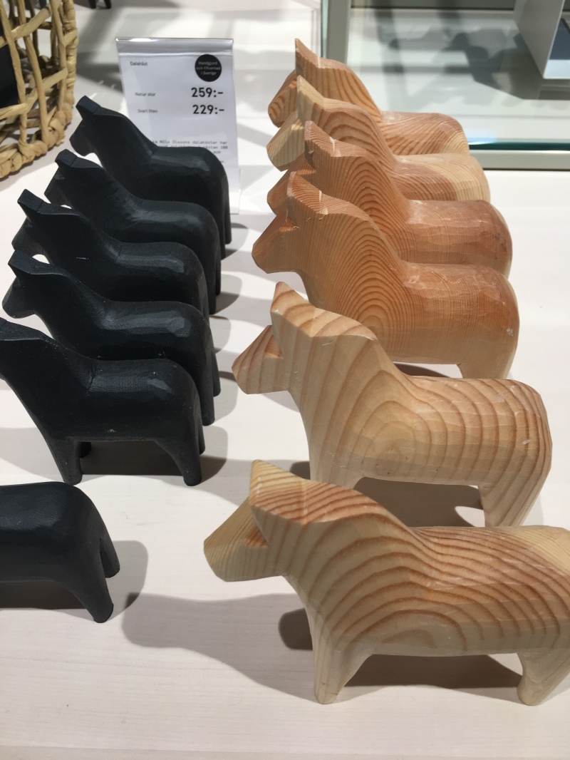 鮮やかな色というよりも白や黒などシックなデザインのものが多く、それだけシンプルなので国の生活文化に関わらず馴染みやすいと思います。例えば、スウェーデンのお土産の定番であるダーラナホースも取り扱っていますが、何も色を塗っていない木目が見える馬や黒一色の馬など伝統を新しい視座で見つめるという、他のショップでは見つけることのできない切り口で商品展開がされています。