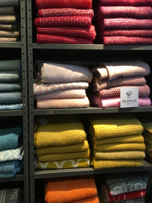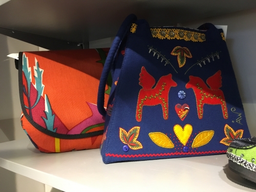 ダーラナ地方の定番・木馬のダーラナホースや白樺の木の皮で編んだバスケット、ふかふかの羊毛を使って編み上げたスウェーデンの人気ブランドKlippan製のブランケット、色とりどりの糸や布で1点1点微妙に違う手作りの刺繍工芸など、品揃えも豊富です。