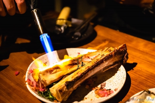 お店の一押しの牛の大腿骨のロースト「Roast Bone Marrow」は、肉の旨みが凝縮されたトロトロの骨髄(マロウ)をパンと一緒に食べる人気の一品。