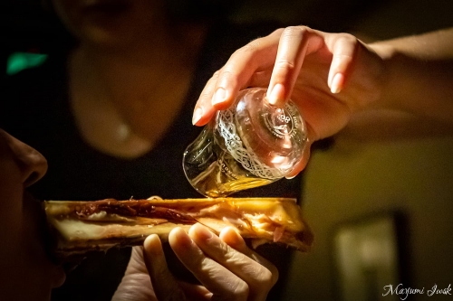 実際に食べられる箇所はかなり少ないですが、残った骨を一度バーナーで炙り、骨の溝に注いだスコッチを飲むという豪快なオプションも。「バイキングが食べそう」ということでメニュー入りしたそうです。