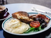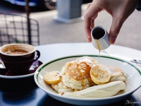 写真:Mayumi Iwasaki トロトロのスクランブルエッグが入った「full ausie(フル・オージー)」($26.00 / ¥1,980) |  写真:Mayumi Iwasaki パンケーキ・ブームの火付け役「ricotta hotcakes(リコッタ・ホットケーキ)」($23.50 / ¥1,790)) |  写真:Mayumi Iwasaki |
