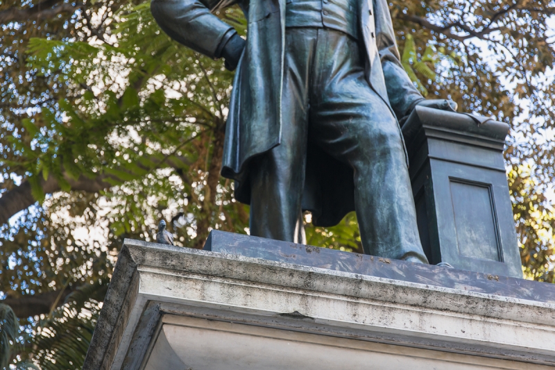 こちらのMacquarie Place Park(マッコーリー・プレイス・パーク)にある銅像も、よく見ると足元に小鳥が。