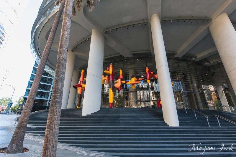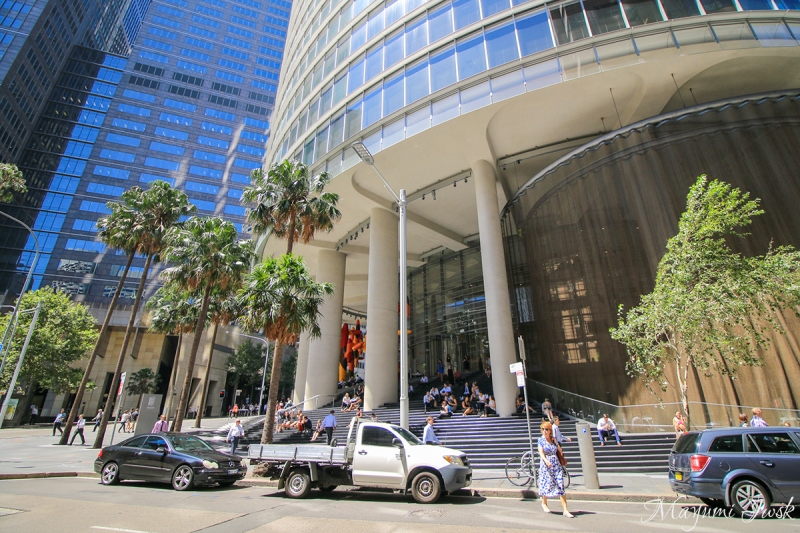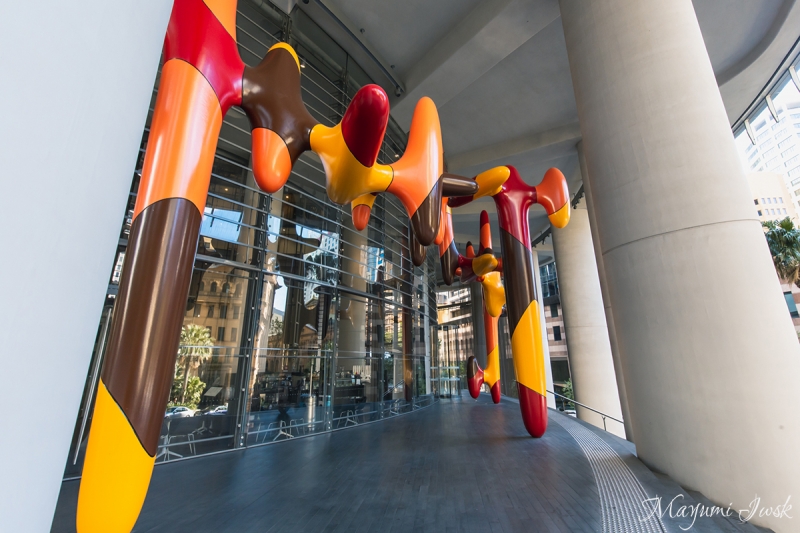 この辺りはシドニーでも有数の金融街で、オフィスが立ち並ぶエリアです。突如として現れるカラフルでポップな彫刻と、無機質なビルとのコントラストを感じます。入り口の大きく湾曲階段が、まるで彫刻のためのステージのようです。
