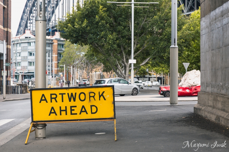 またランナバウトに向かう道路の前後には「ARTWORK AHEAD」という道路標識がありますが、実はこちらもオーストラリア人アーティストRichard Tippingの作品で、車の作品にフォーカスさせるための仕掛けだそうです。見過ごしてしまいそうですが、こちらも是非チェックしてみてください。