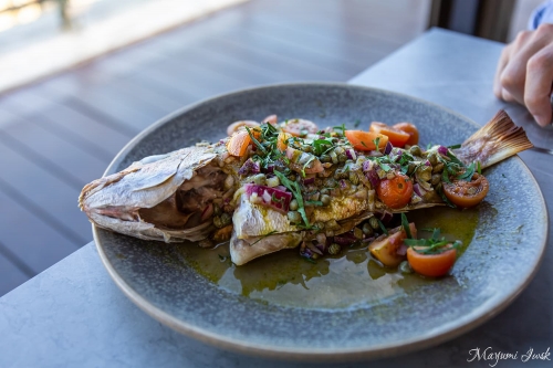 イタリア風のモダン・オーストラリアンで構成されたメニューは、キングフィッシュ(ヒラマサ)のカルパッチョや鯛のアクアパッツァなど、新鮮な素材の美味しさを感じられるお料理ばかり。さらに気持ちいい潮風と海を見渡す絶景は、ランチの最高のスパイスになります。