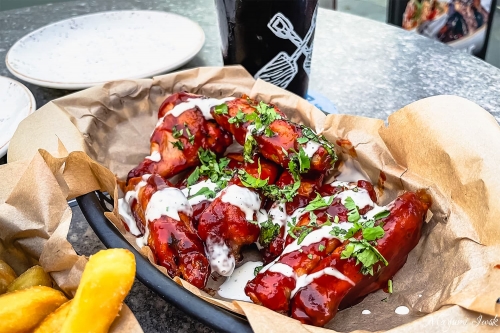 写真:Mayumi Iwasakiピリ辛のBBQソースが堪らないCrispy Smoked Chicken Wings($18.00 / ¥1,500)