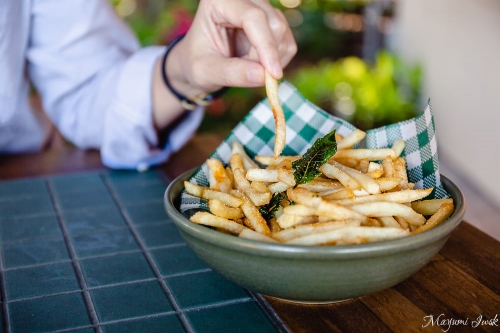 ピザなどのお酒に合いそうなイタリアンな軽食も楽しめます。こちらのポテトフライは、バジルとローズマリーの風味と適度な塩気が、シンプルながらとても美味しいです。キリッと冷えたビールやスパークリングにとても合います。