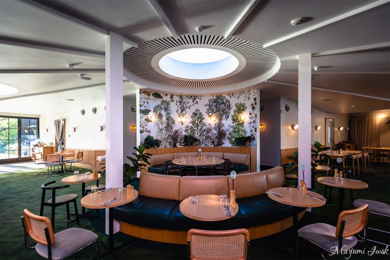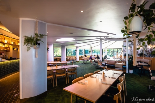 EatelyやBarのあるArt Gallery Roadと反対側、Domain(ドメイン)の公園側にあるのがこちらの「Restaurant(レストラン)」です。円いトップライトから明るい光が降り注ぎ、たっぷり取られた窓の向こうには公園の緑が広がっています。グリーンで統一されたボタニカルなイメージのインテリアは、室内にいながらしてリラックス感抜群の空間です。