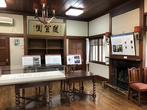 昭和9年に建てられた洋館で、館内では庭園の歴史などを紹介しています。日本間と洋間が融合した内装で、椅子に座って洋館の雰囲気をゆっくりと楽しめる、素敵な休憩スポットでもあります。
