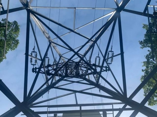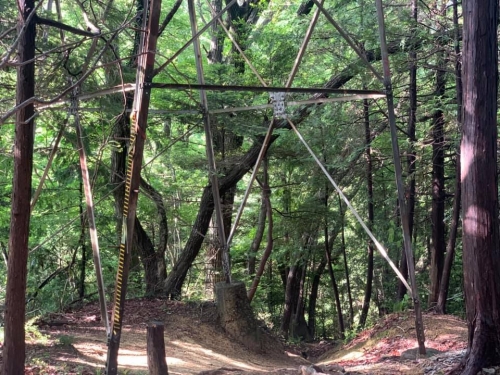 眺望はほぼなく、鳥のさえずりや草木を楽しみながら、たまに出てくる木の根の道を注意しながら進んでいくと、鉄塔の真下を通れる道が2回出てきます。